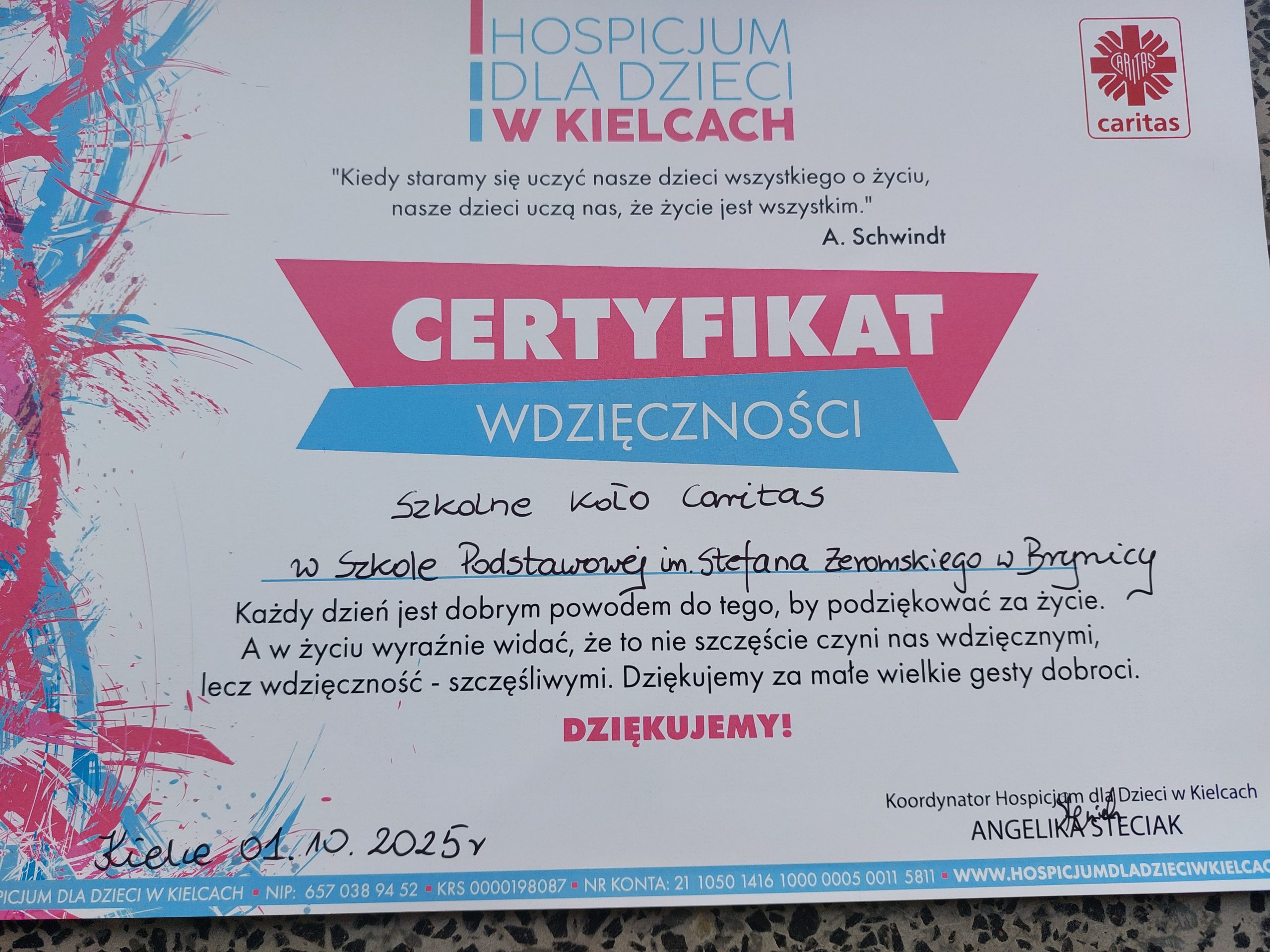 Niesienie pomocy bliźnim to dostrzeganie Jego smutku, potrzeb a także zwrócenie uwagi na sytuacje w jakiej się znajduje. Nasz wolontariat otrzymał CERTFIKAT WDZIĘCZNOŚCI. Rodzicom. Wolontariuszom Koordynatorowi GRATULUJEMY.