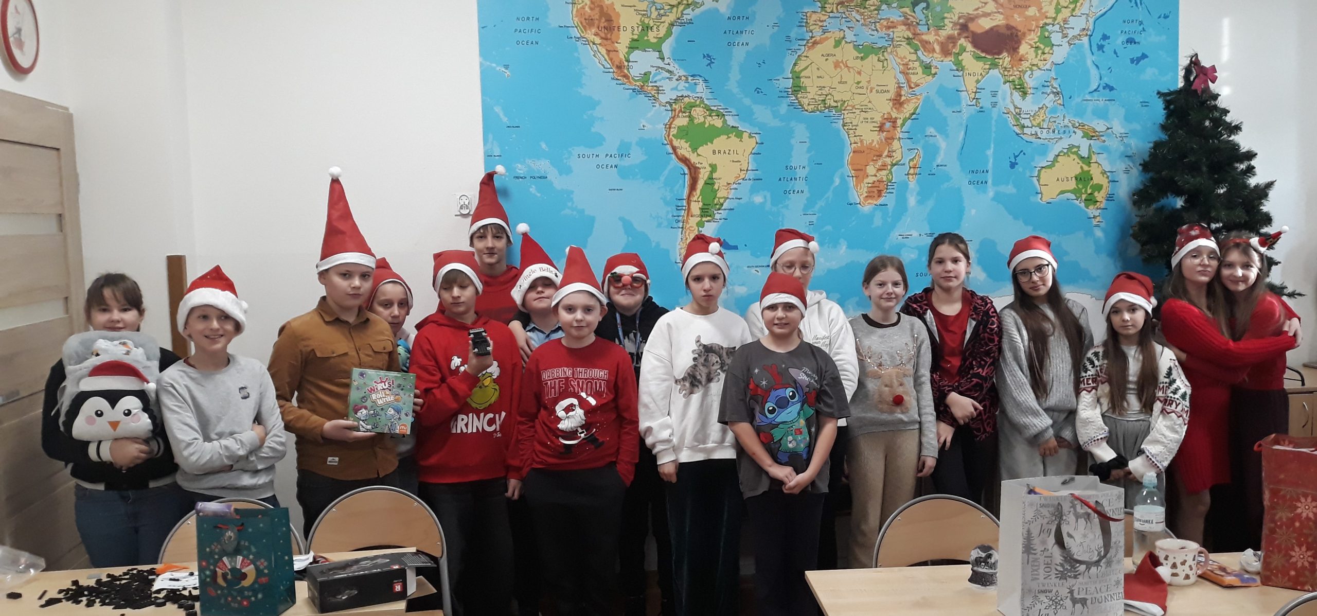 W ostatni piątek, czas w świetlicy upłynął na wykonywaniu kartek świątecznych dla najbliższych, wspólnym redagowaniu życzeń. Dzieci rozwiązywały w grupach krzyżówki, rebusy i wykreślanki o tematyce świątecznej. Był też czas na zabawę - min. "ciepło - zimno", skojarzenia czy "podaj dalej".