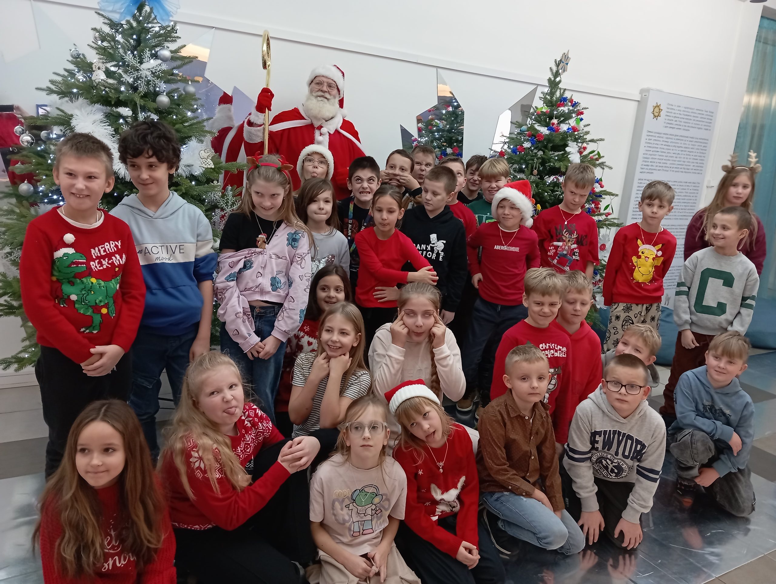 8 grudnia uczniowie klas 1-3 oraz przedszkolaki ze szkolnej „zerówki” pojechały na zajęcia do Muzeum Zabawek i Zabawy w Kielcach. W czasie zajęć mieli okazję zobaczyć ekspozycje (zabawek, dekoracji choinkowych), które przeniosły je w czasy ich rodziców, dziadków, a nawet pradziadków. Następnie uczniowie uczestniczyli w warsztatach plastycznych „Świąteczne malowanie po ścianie”, a na zakończenie spotkali się z Mikołajem, który wręczył im drobne upominki.