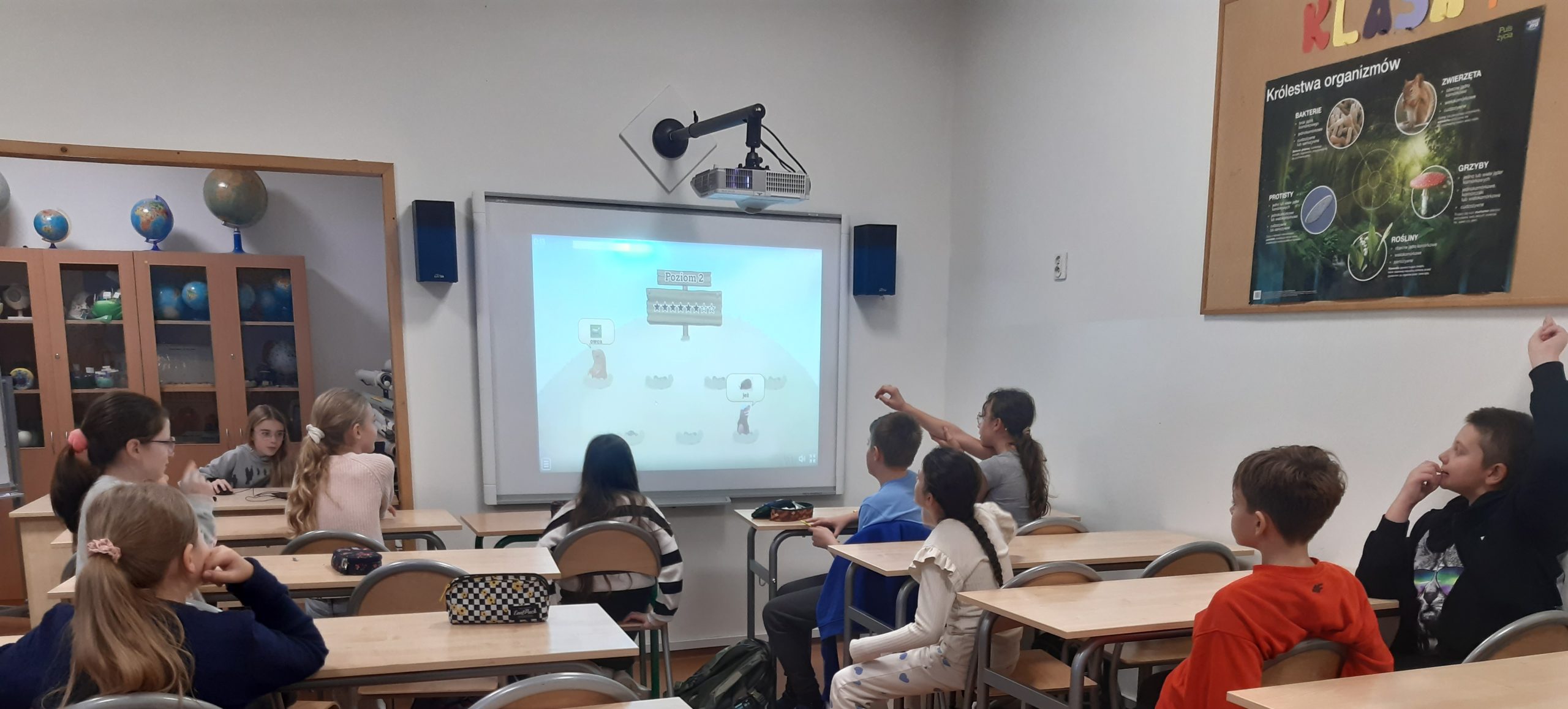 Na ostatnich zajęciach kreatywnych uczniowie tworzyli niesamowite historie z wykorzystaniem pojęć przyrodniczych. A, że wszystko w opowiadaniach miało być "na opak" musieli być bardzo pomysłowi. Jak się okazało, zadanie nie sprawiło dzieciom większych problemów, a zabawa przy tym była doskonała. Uczniowie lubią też gry interaktywne np. rozpoznawanie nazw ssaków czy ptaków.