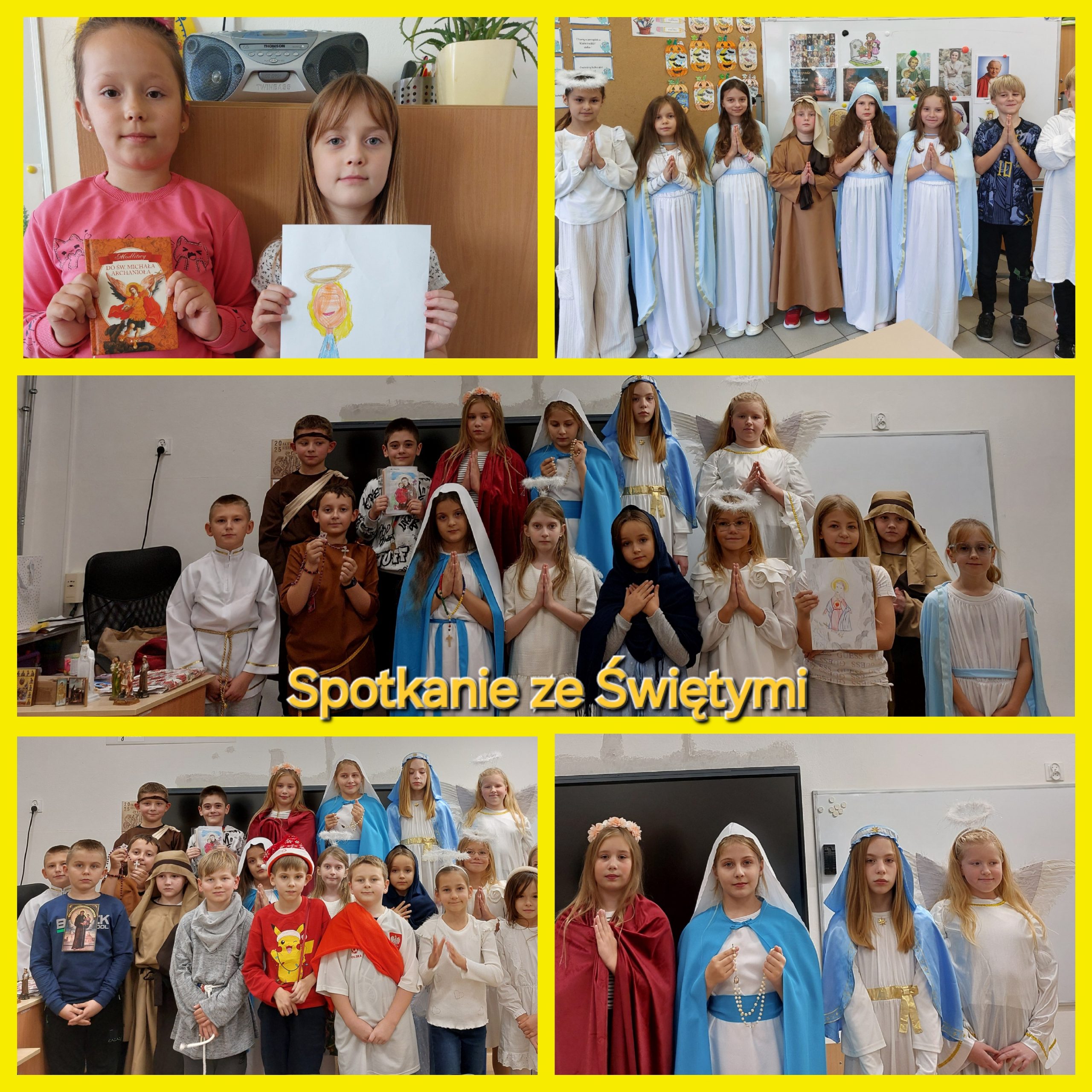 Uczniowie uczestniczyli w lekcjach o Świętych bardzo zaangażowali się wyszukując przebranie za ulubionego patrona pięknie też zaprezentowali tych Świętych.W klasach starszych były też ciekawe prace plastyczne naszych uczniów odkrywające ich niezwykle talenty plastyczne -informatyczne . Wszystkim dziękuje za piękna postawę, za zaangażowanie również Rodzicom. Bądźmy Świętymi na co dzień nie tylko od święta.