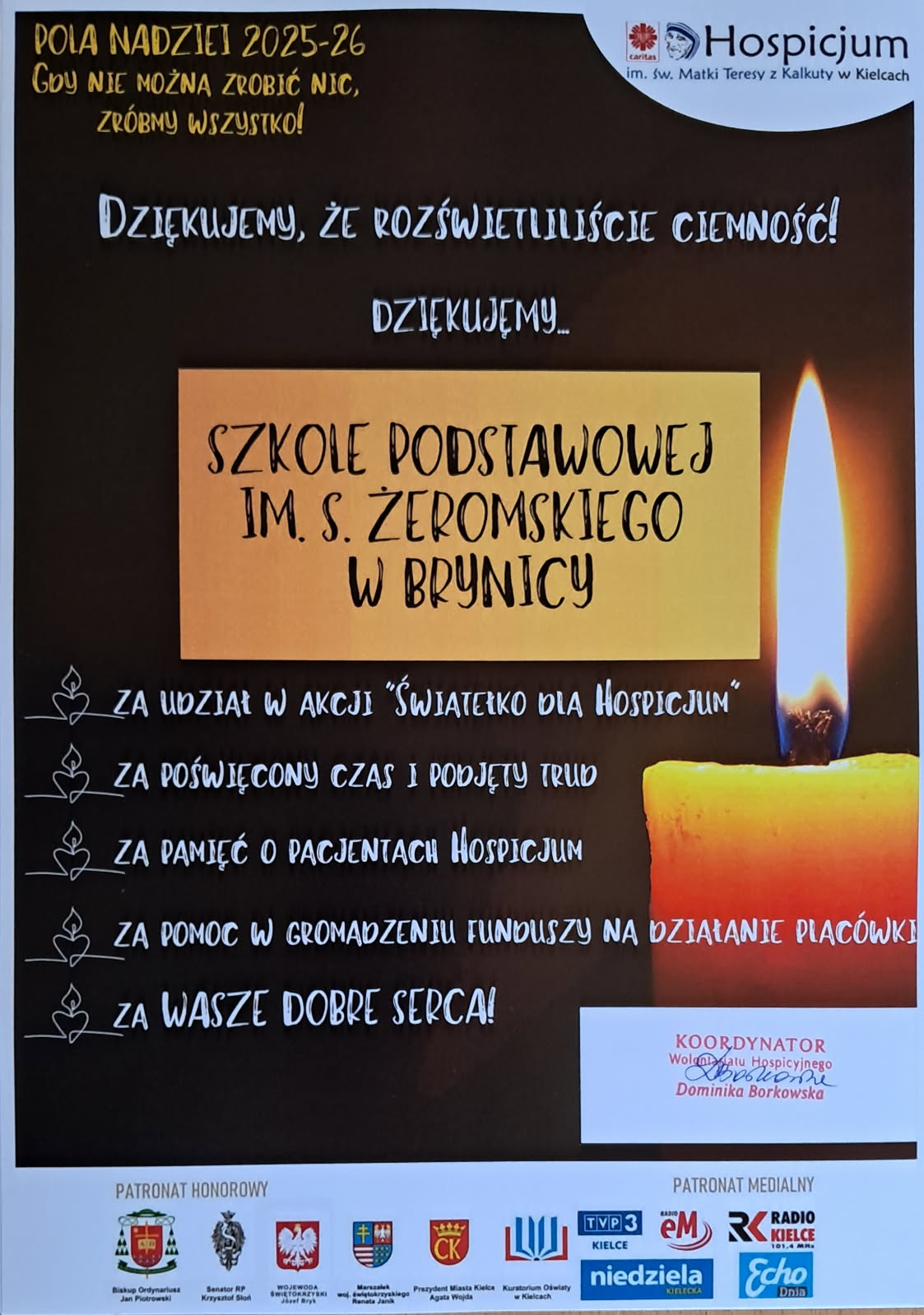 Dla naszych Super Wolontariuszy i dla wszystkich Darczyńców serdecznie podziękowania. Bądźmy Aniołami którzy niosą światełko dobra. Koordynator szkolnego wolontariatu.