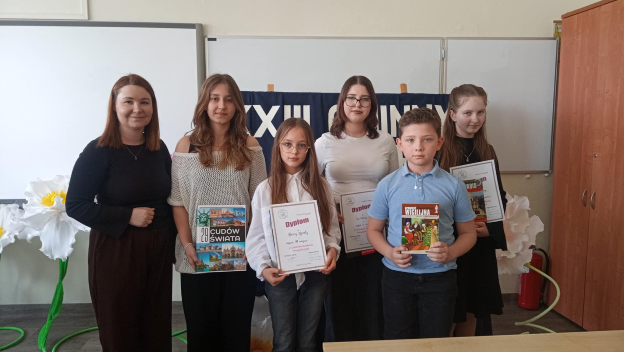 25 marca 2026 r. w Szkole Podstawowej w Piekoszowie odbył się XXIII Gminny Konkurs Ortograficzny. Uczestnicy musieli zmierzyć się niełatwym tekstem dyktanda opowiadającym o wścibstwie i plotkarstwie. Dla naszych uczniów nie stanowił on jednak trudności. Wśród nagrodzonych znaleźli się: - kategoria kl. 4-6: Natalia Rutka z kl. 6 i Hania Zapała z kl. 5 - III miejsce - kategoria kl. 7-8 Ewa Zaława z kl. 8 III miejsce, Katarzyna Surma z kl. 7 wyróżnienie. Kategorię klas młodszych reprezentował Leon Piróg z kl. 7, który otrzymał nagrodę za udział. Gratulujemy!