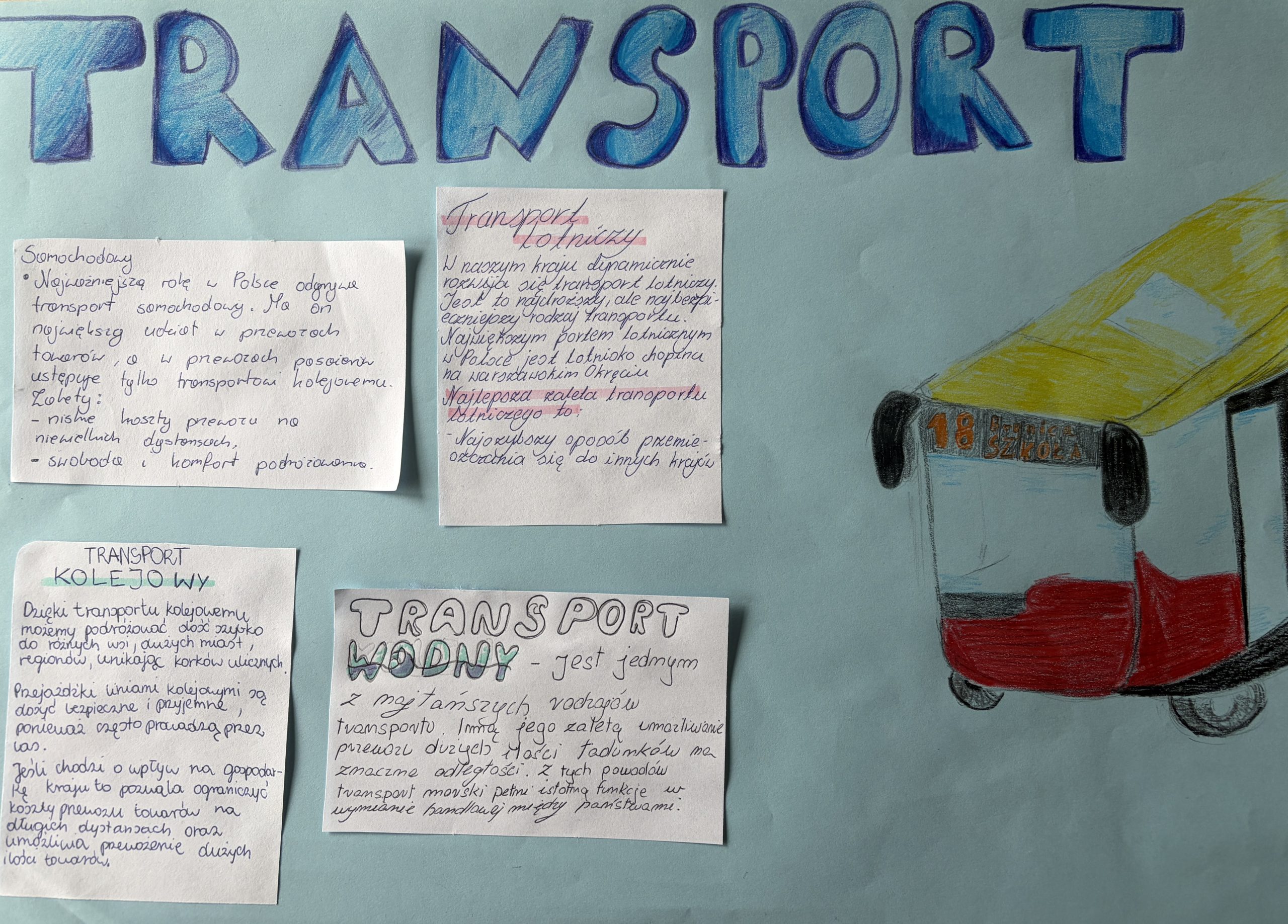 Na lekcji geografii uczniowie klasy 7 realizowali temat o usługach w Polsce. Pracując w grupach, wg własnych koncepcji, stworzyli prace przedstawiające charakter i zalety poszczególnych usług. Dbając o estetykę wykonania uwzględnili najistotniejsze treści i zaprezentowali na forum końcowe efekty. Trochę inna forma lekcji przypadła uczniom do gustu.