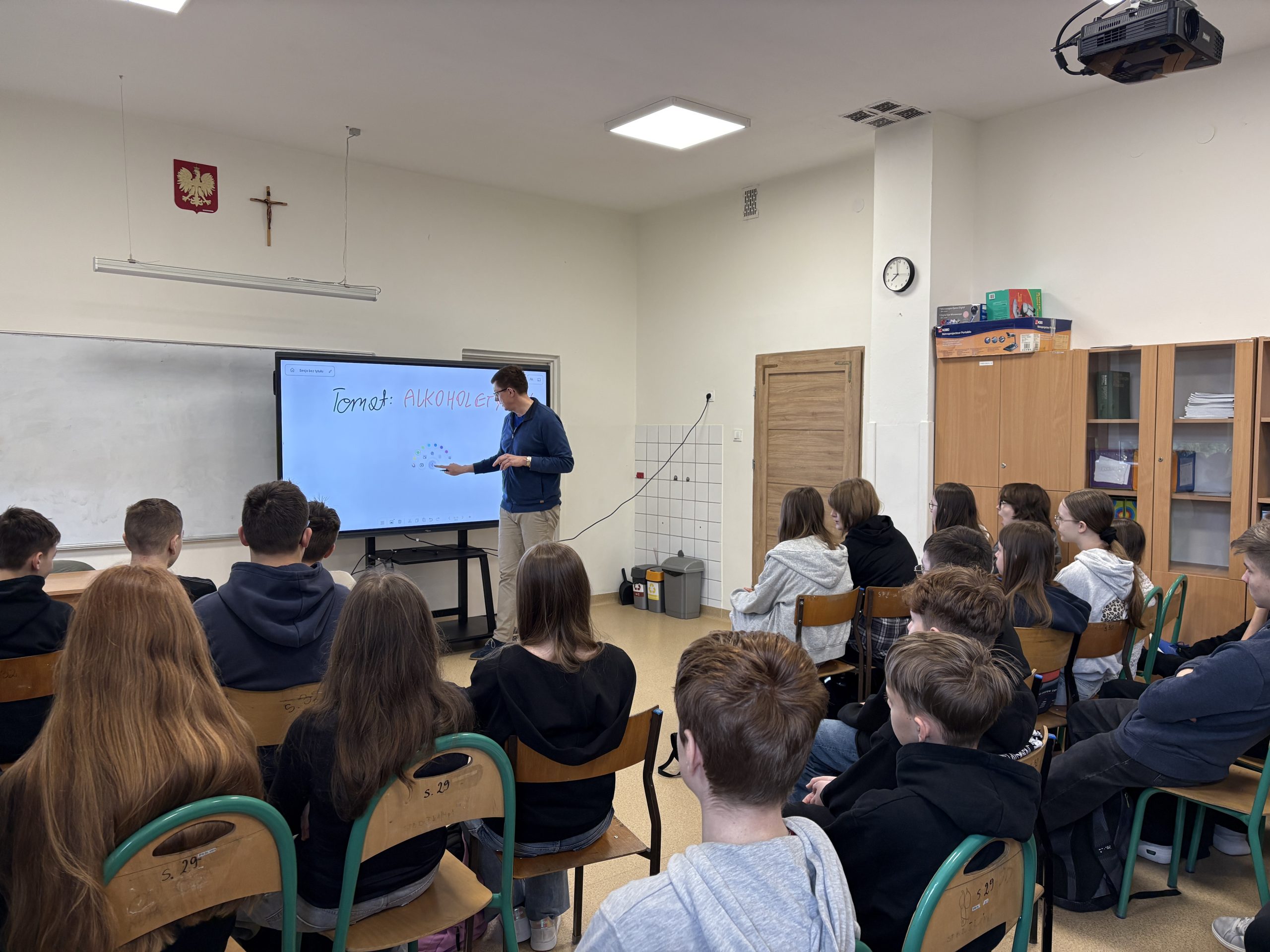 9 kwietnia uczniowie klasy 6 i 7 wzięli udział w programie profilaktyczny „Debata”, prowadzony przez pana Albina Wróblewskiego, reprezentującego Ośrodek Rozwoju Edukacji oraz Instytut Psychiatrii i Neurologii. Program miał charakter uprzedzający. Jego głównym celem było zapobieganie używaniu substancji psychoaktywnych a także promowanie postawy trzeźwości wśród młodzieży.