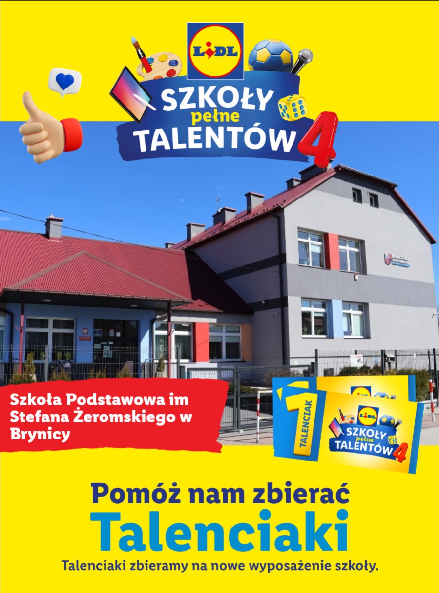 Drodzy Rodzice ruszyła akcja "Szkoły Pełne Talentów" zbieramy talenciaki dla naszej szkoły na kolejne nagrody dla uczniów oraz wyposażenie klas. Dołączcie do akcji! Szczegóły dostępne na stronie Szkoły Pełne Talentów | LIDL.PL