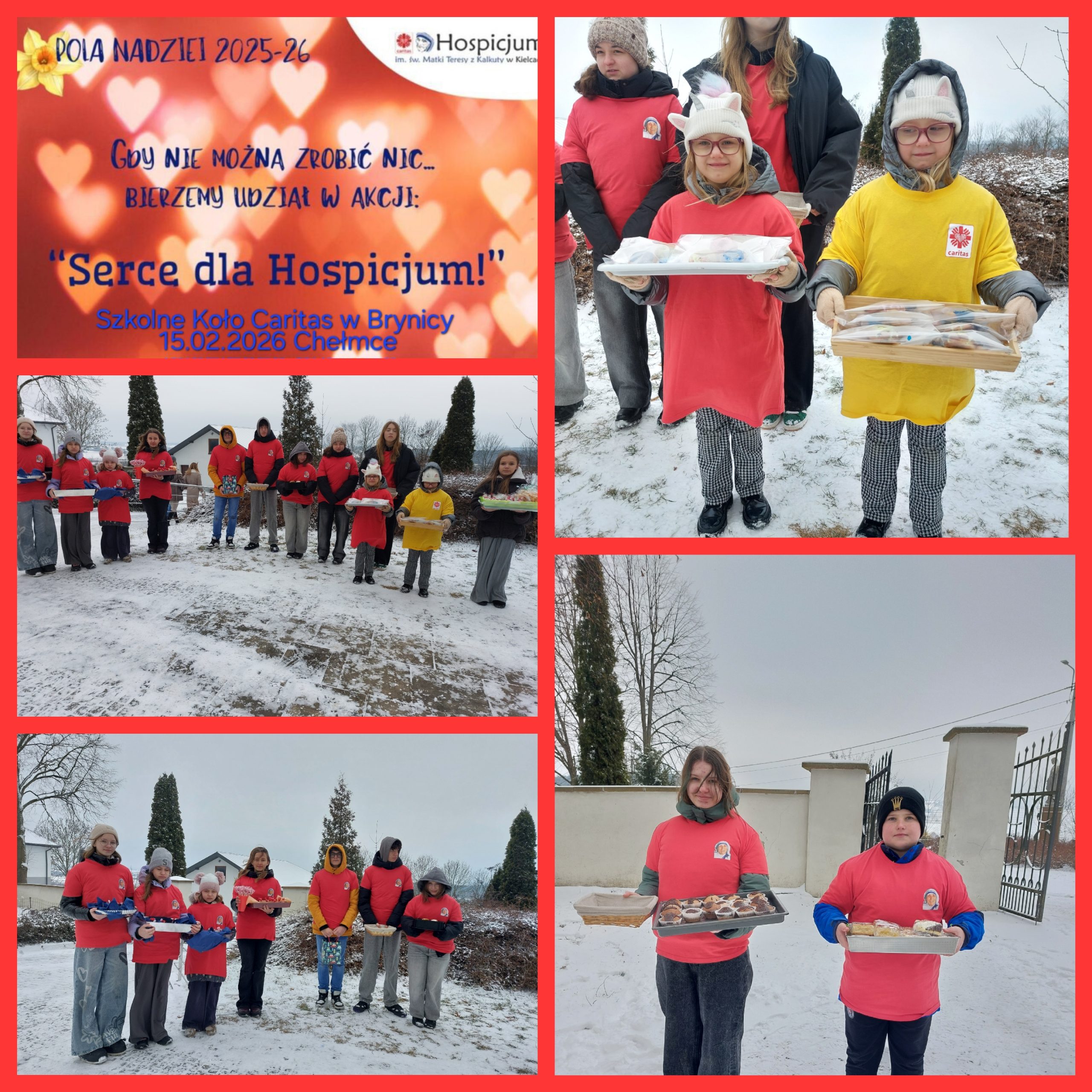 Sypnęło śniegiem zimnem powiało ale nie odstraszyło to naszych SUPER WOLONTARIUSZY by ze swymi wypiekami przybyć do parafii w Chełmcach. Ogromne PODZIĘKOWANIE dla wspaniałych RODZICÓW którzy wspierają swoje dzieci w tych dziełach charytatywnych. To świadectwo przynosi owoce w postaci dobra które nasi Wolontariusze czynią. Okazujmy serce innym byśmy byli Aniołami nadziei i miłości . Koordynator szkolnego wolontariatu