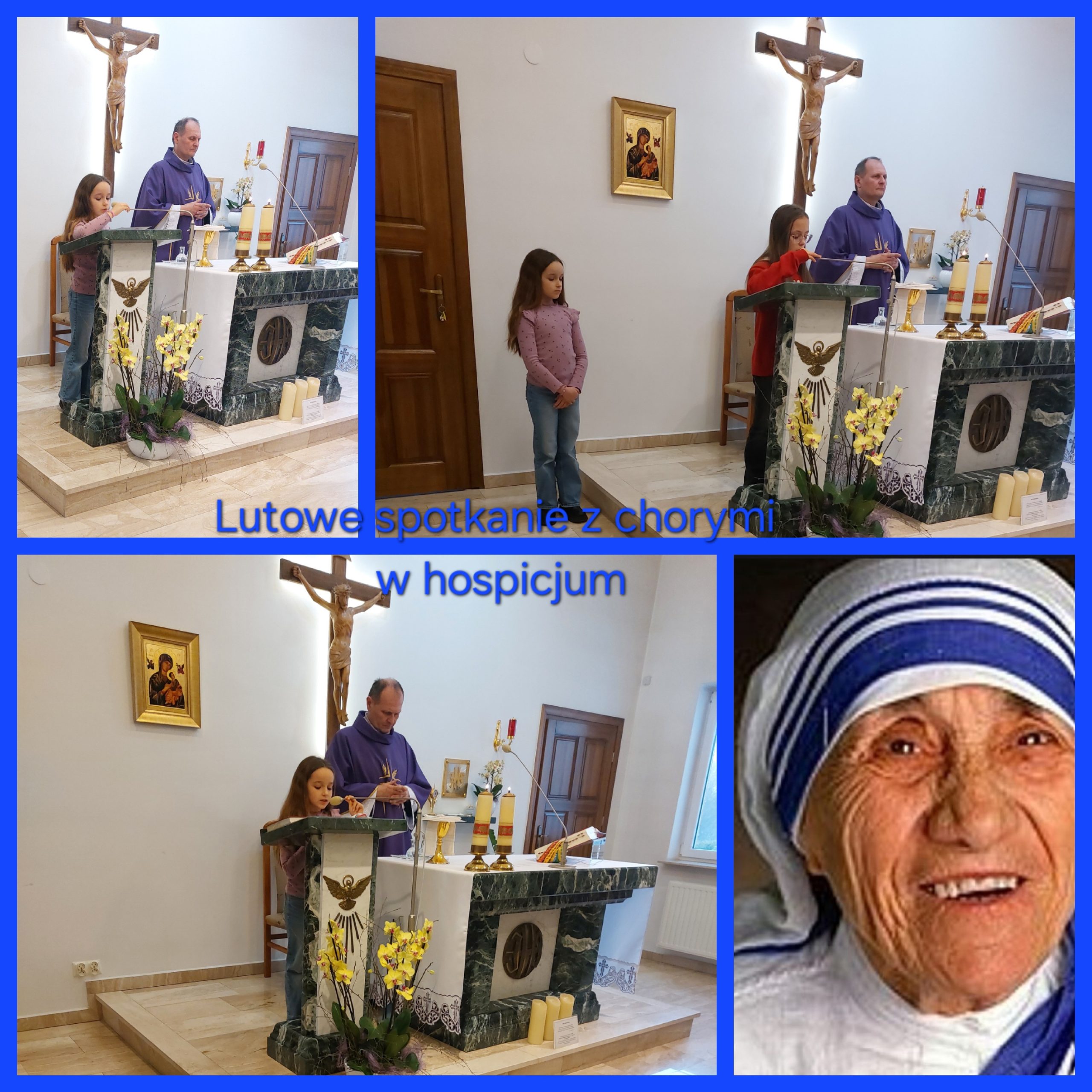 Nasze aktywne Wolontariuszki Hania i Małgosia wraz z mamą kolejny raz odwiedziły chorych z Hospicjum św.Matki Teresy swoim śpiewem ubogaciły Liturgię i podzieliły się czasem który tam spędziły wśród nich. Czasem jeden uśmiech podana dłoń czyni tak wiele dla tych których czas jest cenny. DZIĘKUJEMY Wolontariuszką Koordynator szkolnego wolontariatu