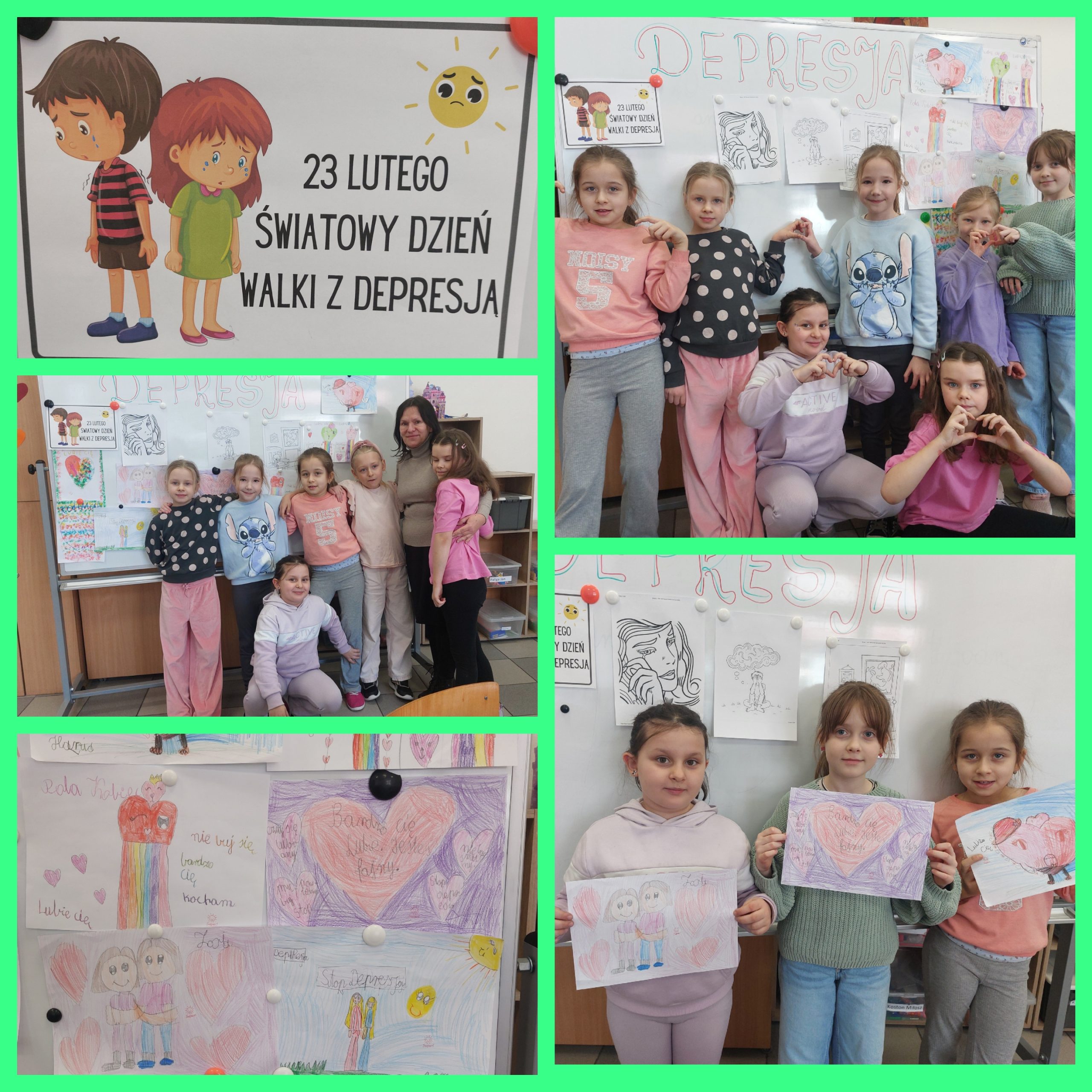 23 lutego jest Dniem Walki z Depresją na naszej szkolnej świetlicy wychowawcy przeprowadzili zajęcia na ten temat.Uczniowie zostali zapoznani z tematem depresji a także podczas warsztatów plastycznych wykonywali prace oraz tworzyli dzieła z plasteliny. Powstały bardzo ciekawe obrazy oraz dzieła.Nasi uczniowie są bardzo kreatywni.