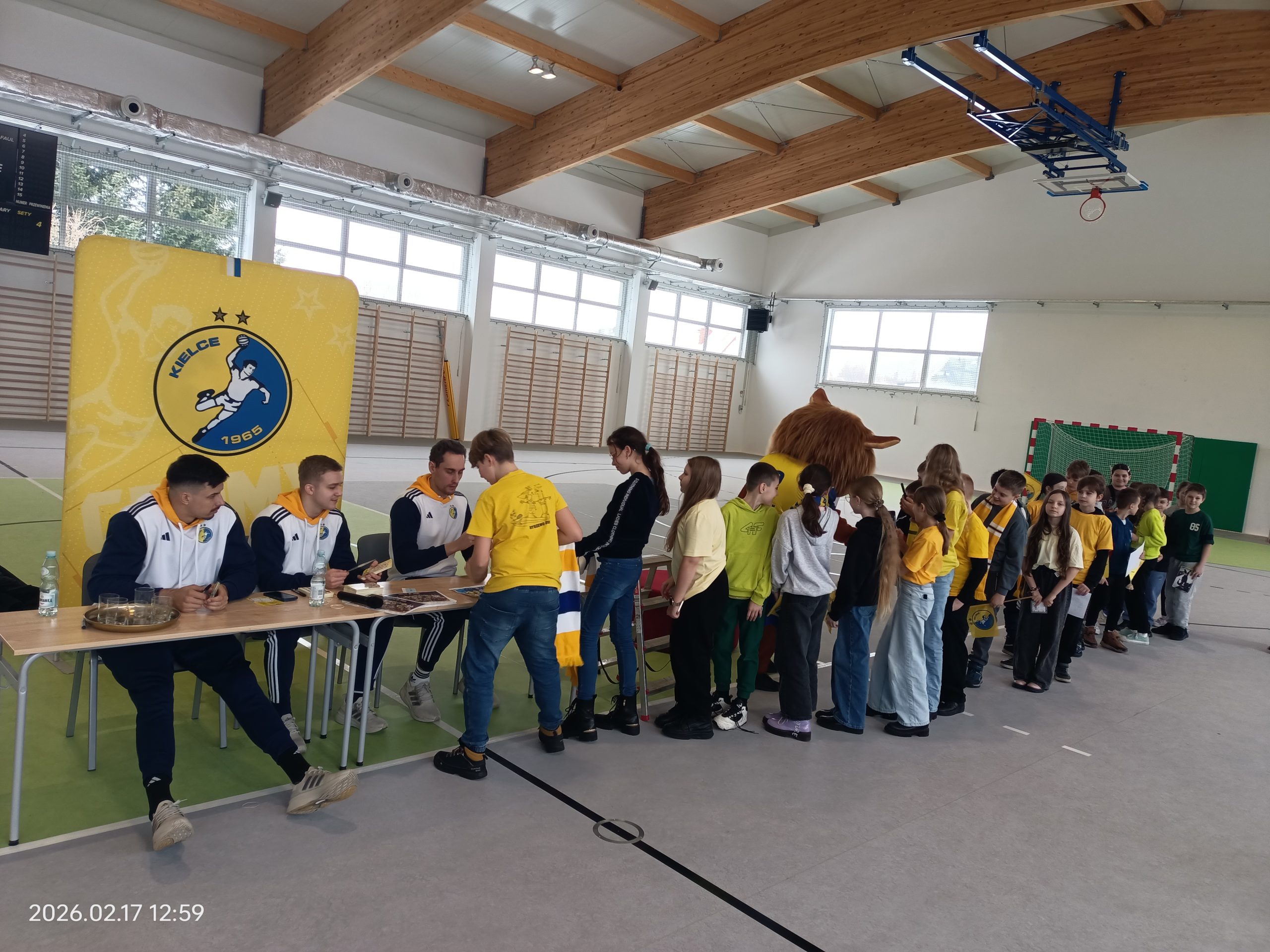 17 lutego uczniowie Naszej szkoły wzięli udział w wyjątkowym spotkaniu z zawodnikami Industrii Kielce – Szymonem Sićko, Adamem Morawskim i Piotrem Jędraszczykiem. Uczniowie podczas spotkania mogli zdobyć autografy, zrobić pamiątkowe zdjęcia oraz wziąć udział w konkursach z nagrodami. Czas spędzony z zawodnikami Industrii Kielce zapamiętają na długo.