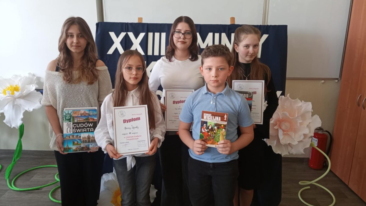 25 marca 2026 r. w Szkole Podstawowej w Piekoszowie odbył się XXIII Gminny Konkurs Ortograficzny. Uczestnicy musieli zmierzyć się niełatwym tekstem dyktanda opowiadającym o wścibstwie i plotkarstwie. Dla naszych uczniów nie stanowił on jednak trudności. Wśród nagrodzonych znaleźli się: