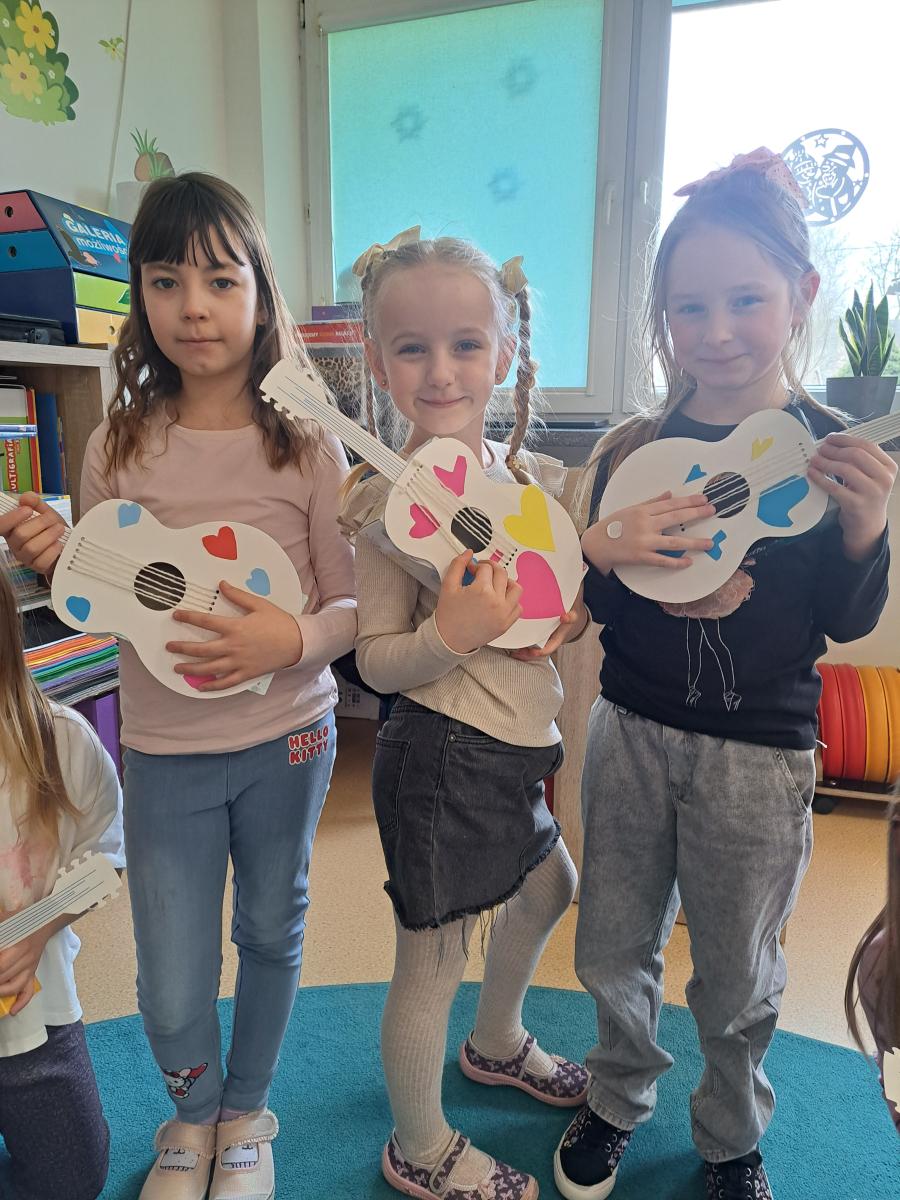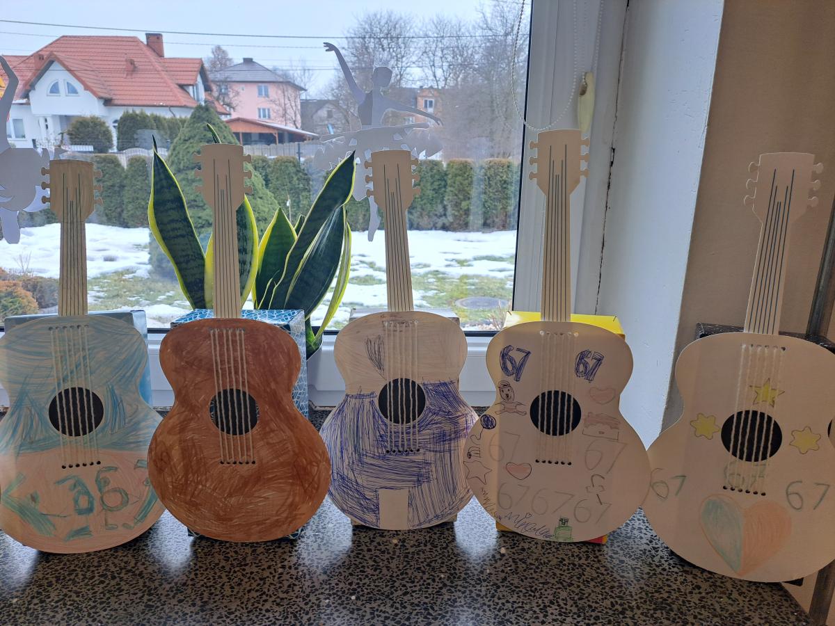 Stworzyliśmy własne instrumenty! Nasze papierowe gitary ozdobione kolorowymi sercami są już gotowe na pierwszy wielki koncert. ❤️🎸